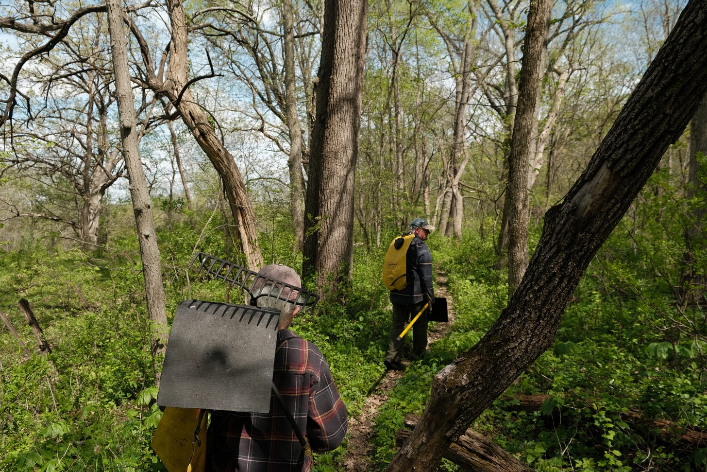On a warm day last May, I found myself stumbling through dense undergrowth in rural eastern Iowa, near my hometown. My headphone and microphone cords tangled in brush honeysuckle and multiflora rose as I followed a decisive path cut by Erin Irish, a biology professor at the University of Iowa, and Gene Szymkowiak, her husband, just ahead. Then we broke through into a clearing. From the hilltop, you could see for miles. The ground all around us was blackened by a prescribed burn the duo had conducted recently. Small bones and the white shells of cooked snails crunched underfoot. Little green tufts were already breaking through, reaching for the sky.